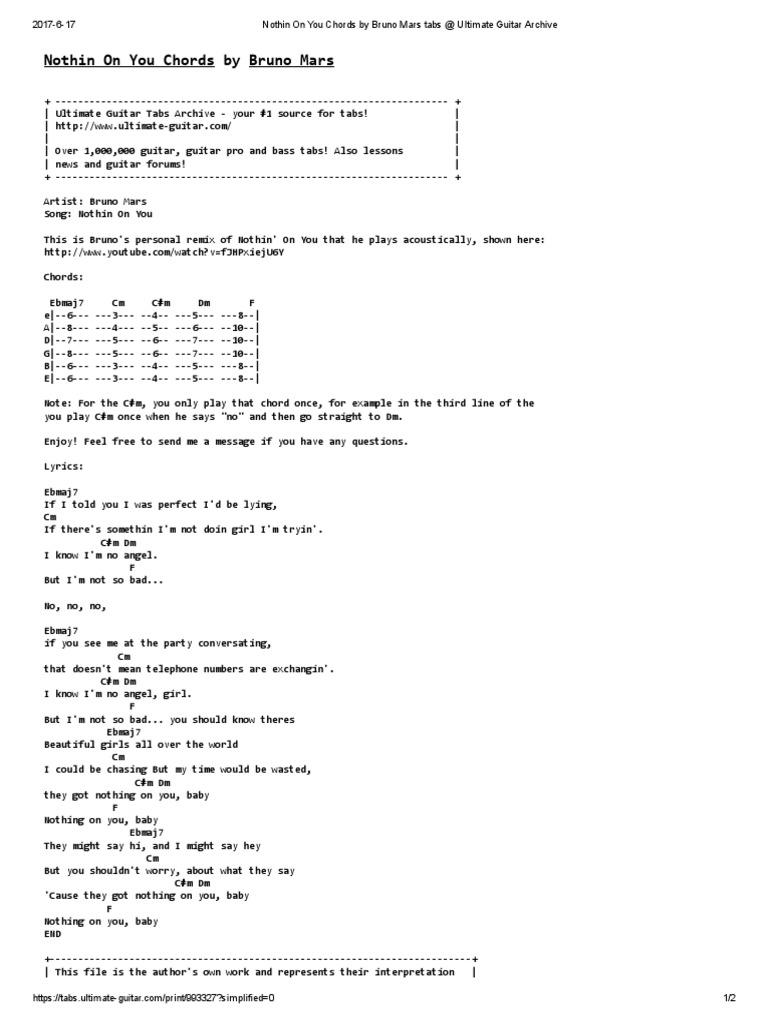 Berikut chord dan lirik lagu Nothing on You yang dinyanyikan oleh Bruno Mars dan kini viral di TikTok. Nothin On You tradução - Tyrese - VAGALUME. Cause they got nothing on you baby Yeah Nothing on you baby.